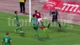 Пет минути по-късно бургазлии поведоха в резултата. Иван Вълчанов получи топката на левия фланг, влезе към центъра, отвори си позиция за стрелба и с удар от границата на наказателното поле прати топката в близкия ъгъл.
